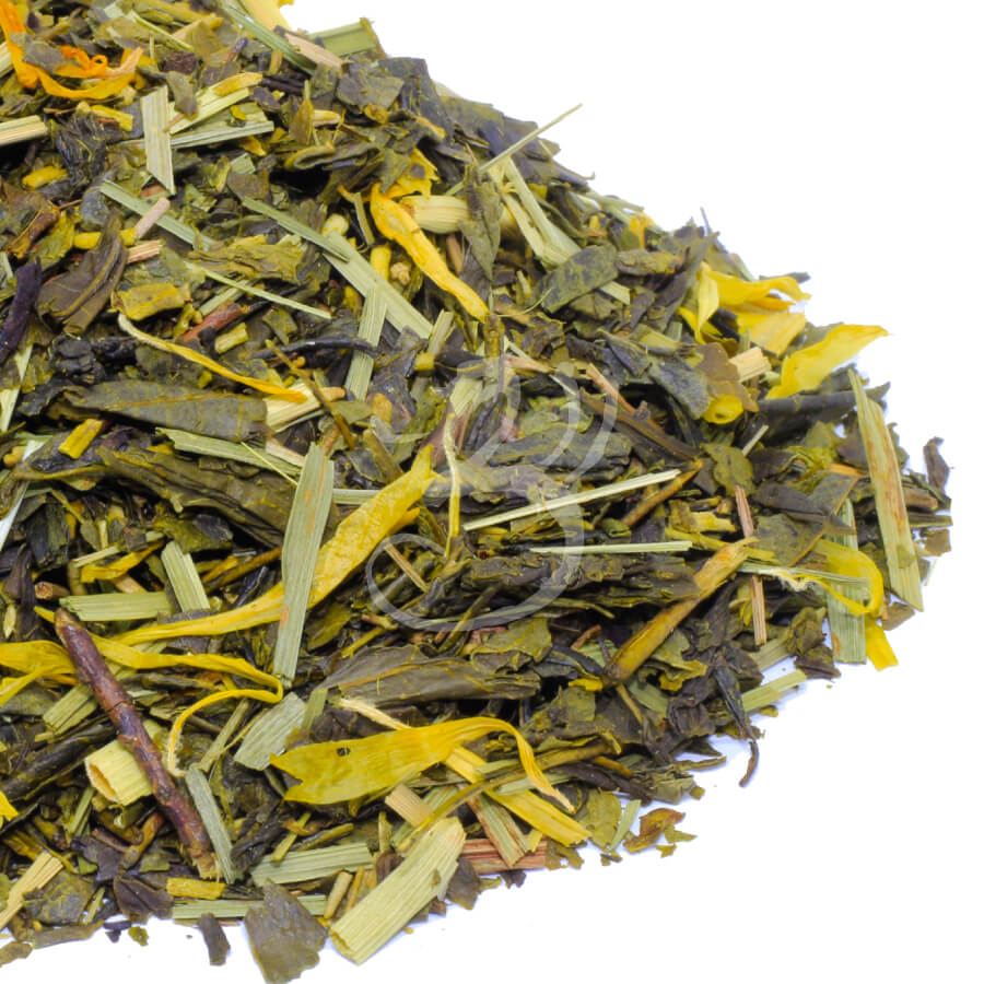 Naše pečlivě vybrané složení zahrnuje kvalitní zelený čaj China Sencha, citronovou trávu a přírodní aroma, které společně vytvářejí osvěžující směs. Nechte se okouzlit rozmarýnem a kůrou z citronu, které společně tvoří harmonickou kombinaci chutí. Díky limetkovému oleji získáváte další dávku svěžesti, a měsíček dodává této směsi jemnost a krásu.