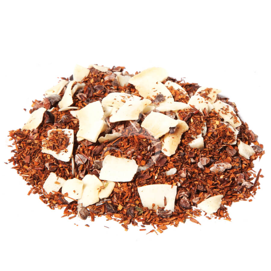 Čokoláda a kokos? Hmmm?, zní to exoticky a je to exotický nápoj se skvělou chutí kokosu a sladké čokolády. Pokud máte rádi kokos nenechte si tento lahodný rooibos utéct.