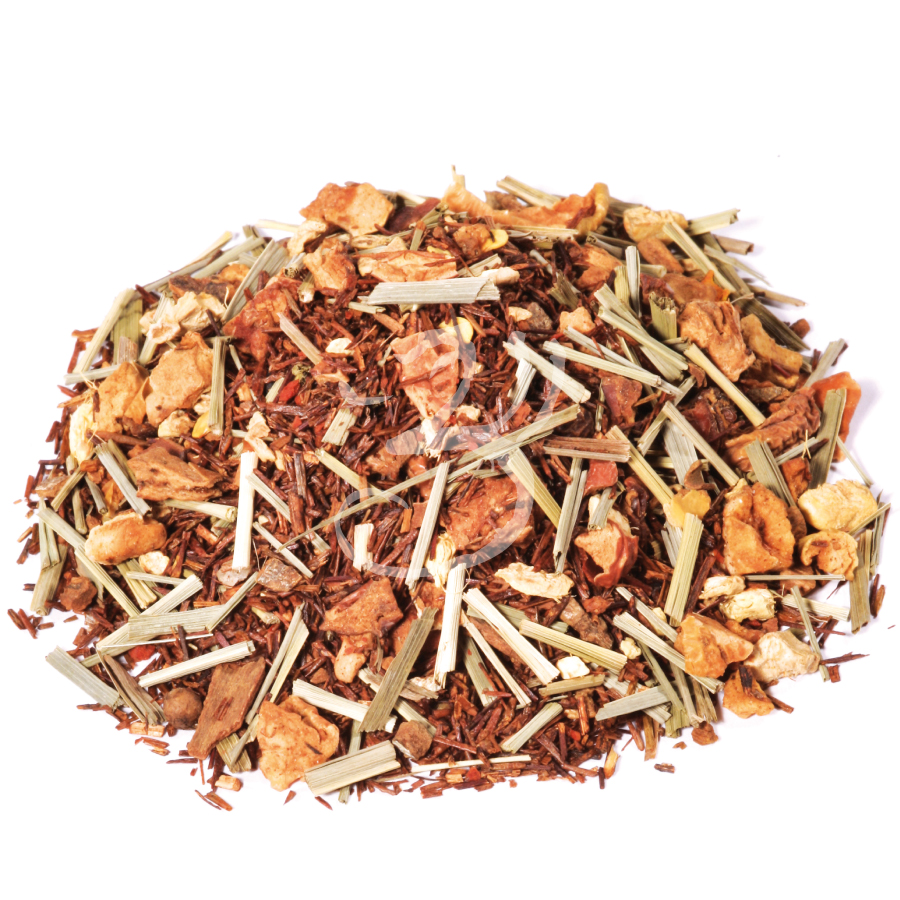 Složení: jablko, rooibos Super Grade, ananas (ananas, cukr), citronová tráva, zázvor, kousky skořice, růžový pepř, hřebíček, Aloe vera (aloe vera, cukr), guarana, goji bobule, chilli.