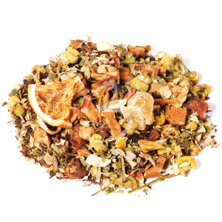 Složení: jablko, ananas (ananas, cukr), ostružinové listy, rooibos Super Grade, olivové listy, zázvor, kousky skořice, heřmánek, pomerančová kůra, růžový pepř, přírodní pomerančové aroma, hřebíček, kousky pomeranče, bylina kontryhel, Aloe vera (aloe vera, cukr).