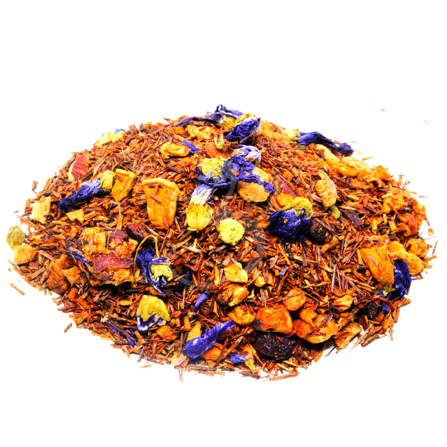 Složení čaje: rooibos, kousky jablek, aroma, višně (5%), lyofilizované kousky švestek (5%), lyofilizované kousky višní, květy slézu.